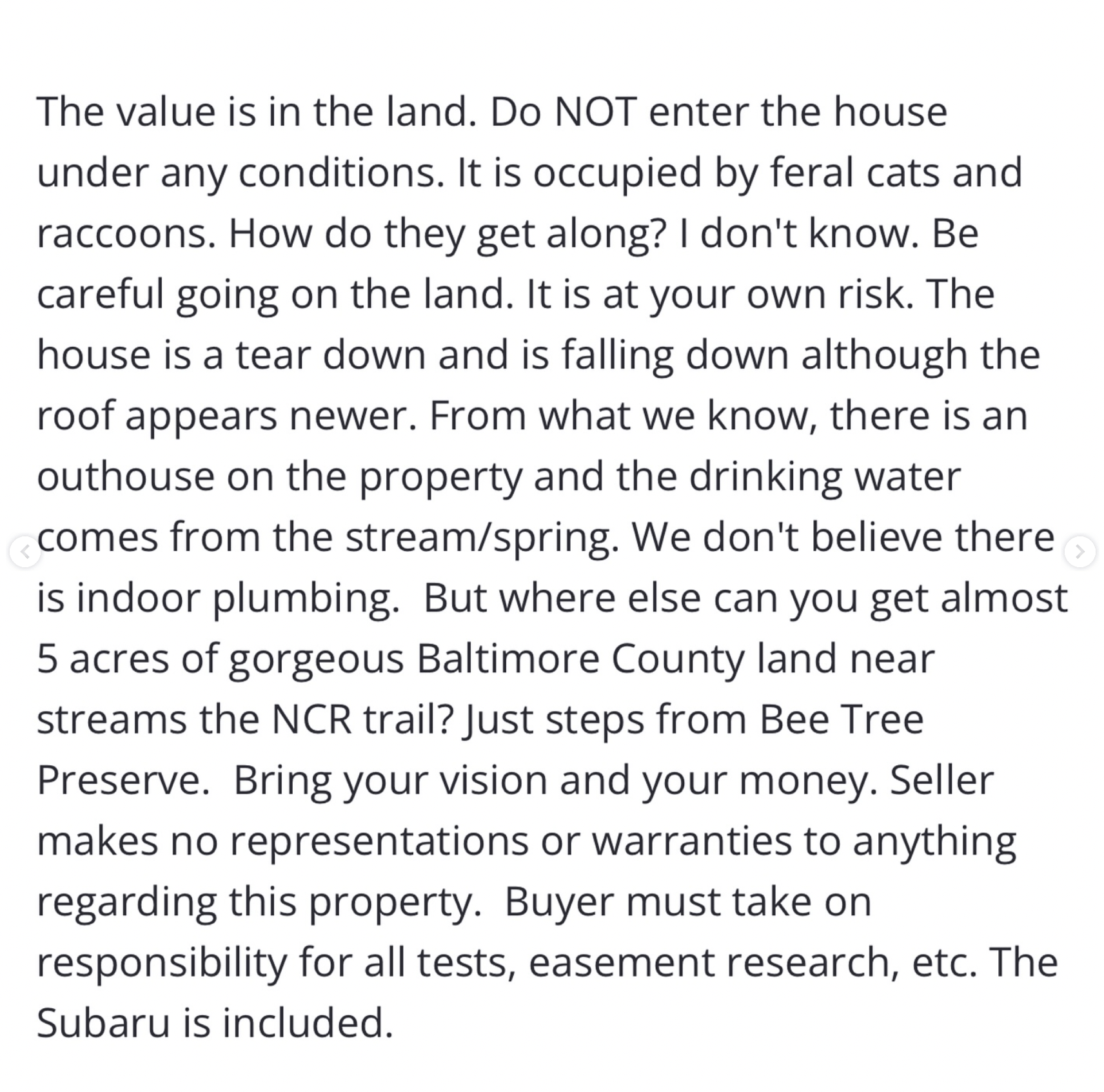 If “Occupied by feral cats and raccoons” is a home feature you are looking for then this is your lucky day. Currently listed for only $300,000 in Parkton, MD. Currently listed via Ashley Richardson Monument Sotheby's International Realty. 609 Bee Tree Rd, Parkton, MD 21120